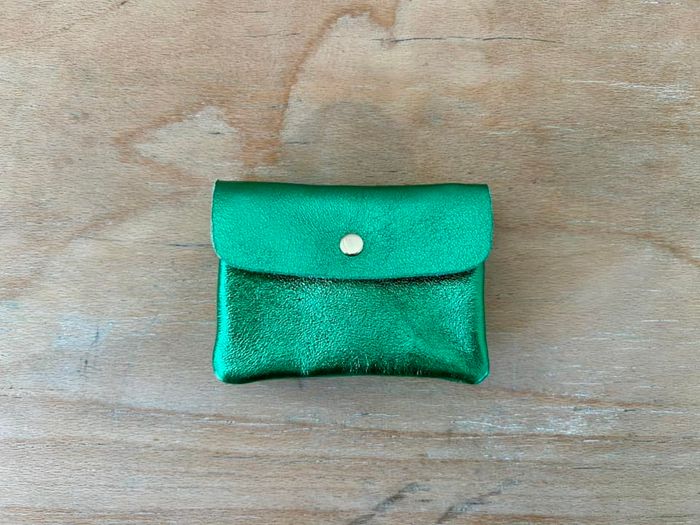 Porte monnaie en cuir vert métallisé petit modèle - photo numéro 1