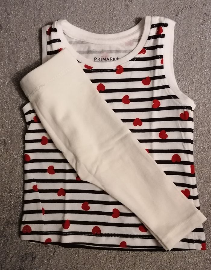 Ensemble été primark 3/6mois 68cm Débardeur à rayures /cœur Legging court blanc (étiquette coupé) Portée. 3€