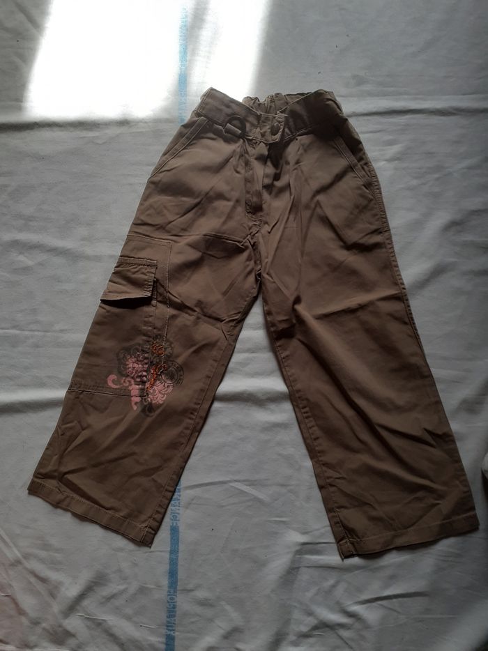 Pantalon léger marron motif rose 3 ans