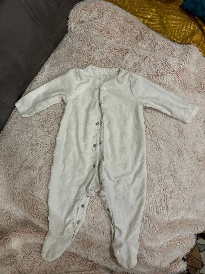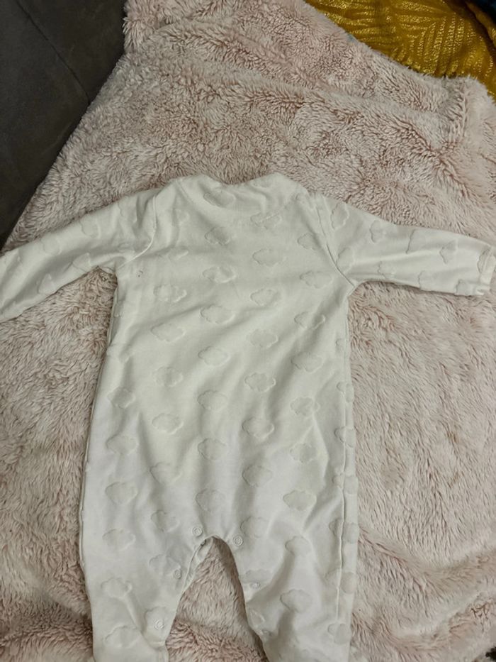 Joli petit pyjama blanc avec des nuage Absorba en 3 mois. Il a une petite tache au dos (voir photo) mais ne gêne pas, il est en très bon état. -5% des 2 articles achetés -10% des 3 articles achetés -20% des 5 articles achetés #charlie51_3moisfille