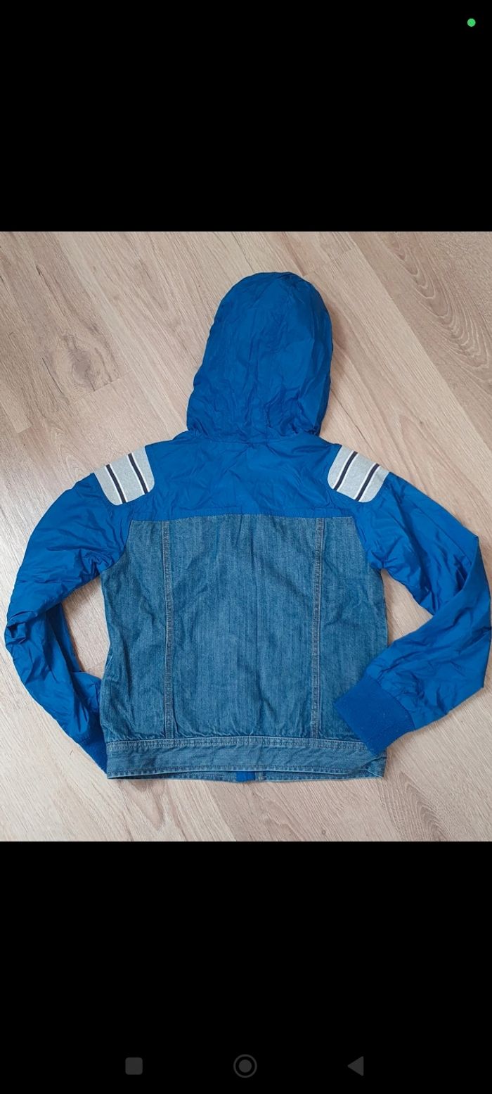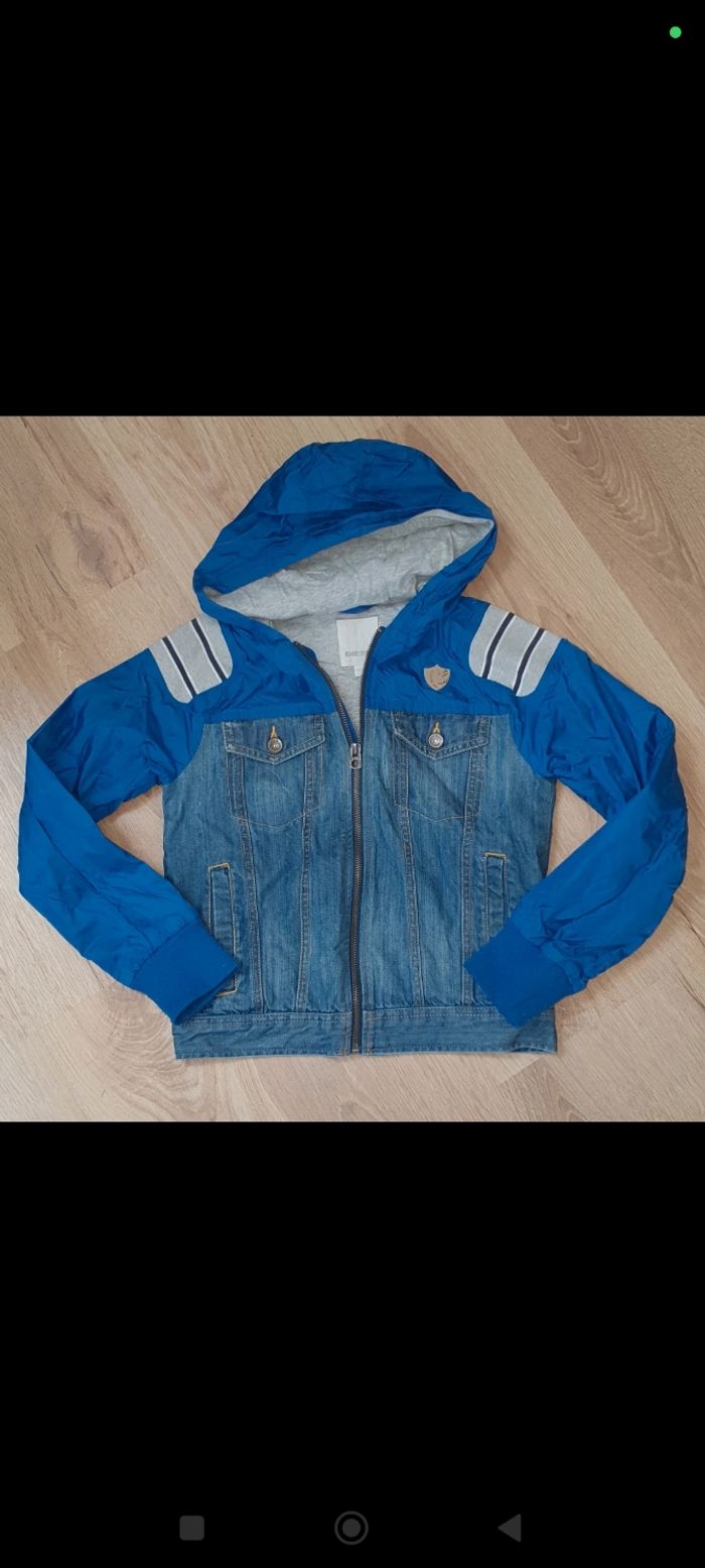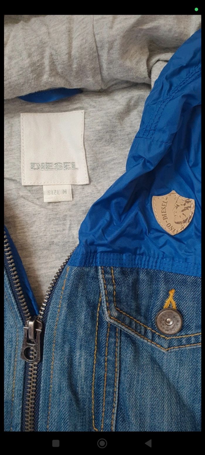 Très belle veste mi saison Double matière : jean et k way Avec capuche Marque DIESEL Taille M soit 10 ans Manches un peu boulochees mais en passant un coup de rasoir, ça peut disparaitre Sinon très bon état