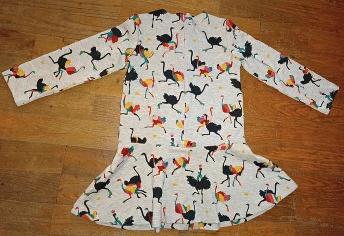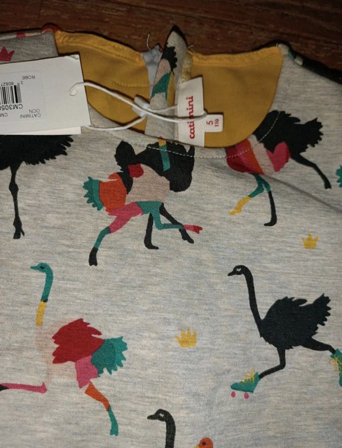 Robe Catimini thème autruche,en molleton idéale pour la saison ,taille 5 ans avec fermeture éclaire au dos, neuve étiquetée achetée 65 euros #revedesoleil75_5ansfille