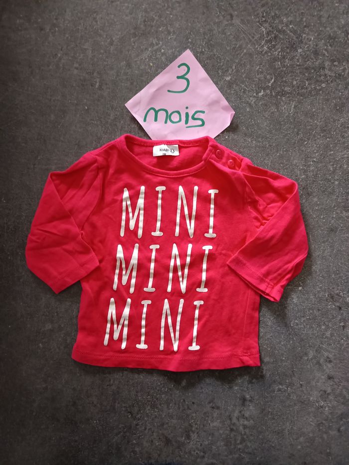 T-shirt manches longues, Rose fushia inscription "MINI" en blanc comme NEUF, porté une ou 2 fois ! Taille 3 mois