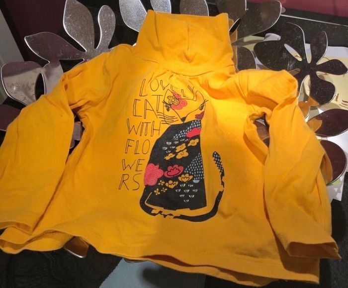 Haut à manches longues et à col roulé jaune en excellent état. Taille 3 ans.