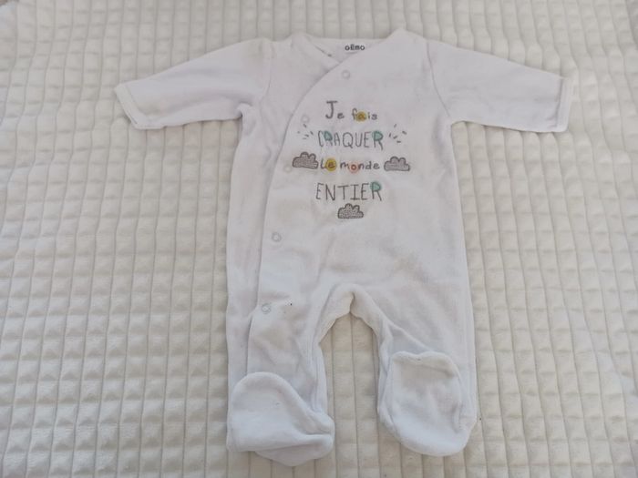 Lot de 3 pyjamas naissance Bon état Légère trace au niveau du col pyjama blanc ( voir photo )