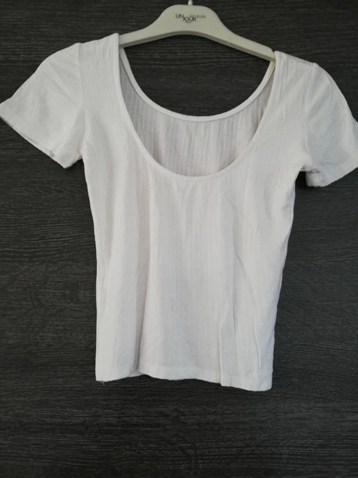 Top de couleur blanc taille XS de marque Jennyfer. 96% viscose et 4 % elastane. bon état. N hésitez pas à faire vos emplettes. Tout doit disparaître Plus vous achetez, plus les réductions augmentent. Pour plus d infos, prenez contact avec moi.