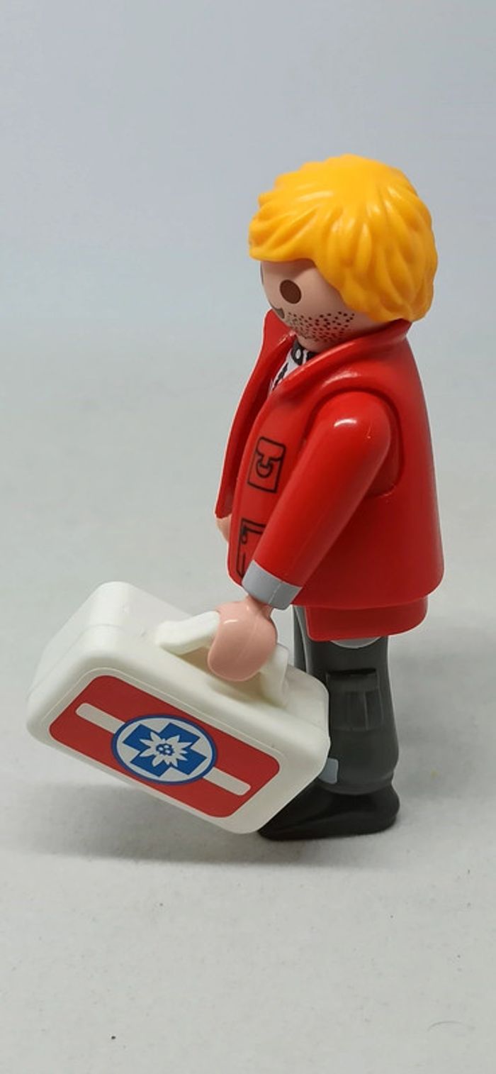 Homme secouriste avec veste rouge et mallette blanche playmobil