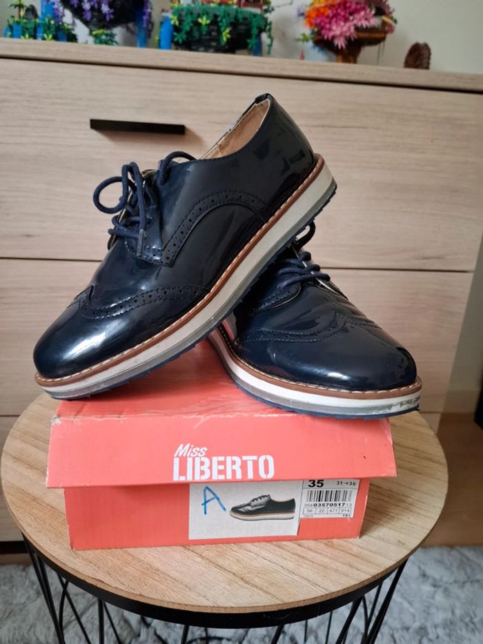 🌺 taille 35 🌺 liberté 🌺 collection septembre 2023 🌺 magnifique derbies vernis , lacets, bleu marine vernis , super mignonne avec robe , jupe et même jeans boîte d’origine fournie 🌺 prix d’achat 34€99 la halle 🌺 excellent état porté une fois #doudou19230_chaussuresfille
