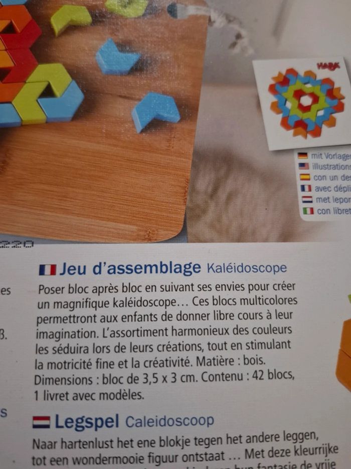 🌺 Ce jeu d’assemblage consiste à composer une multitude de formes à l’aide de petits blocs géométriques et colorés. Ils rappellent les combinaisons sans fin du kaléidoscope. Les petits vont faire travailler leur esprit inventif pour se lancer dans l’aventure de la construction. Ce jeu a pour avantage de stimuler leur motricité fine et captivent. Les grands pourront bâtir des modèles plus complexes. Laisser libre cours à votre imagination ou suivez à la lettre le guide contenant 10 modèles de difficulté croissante