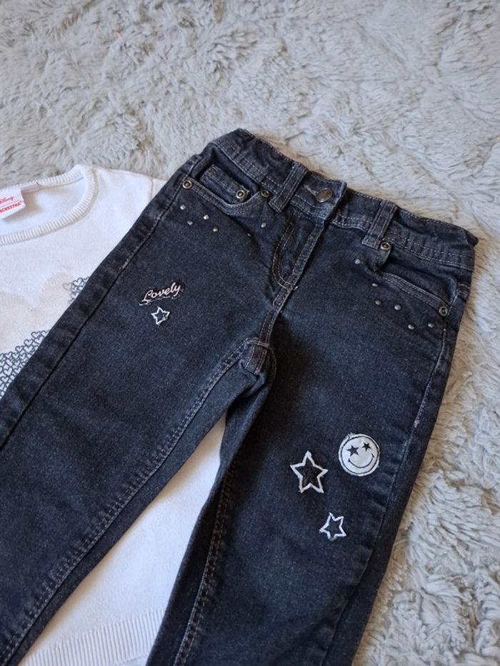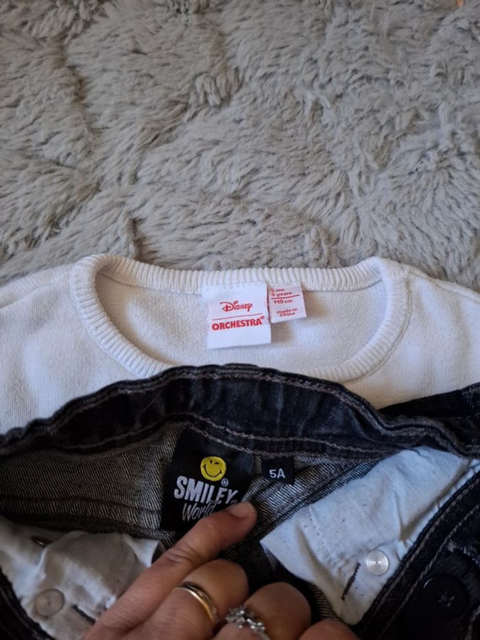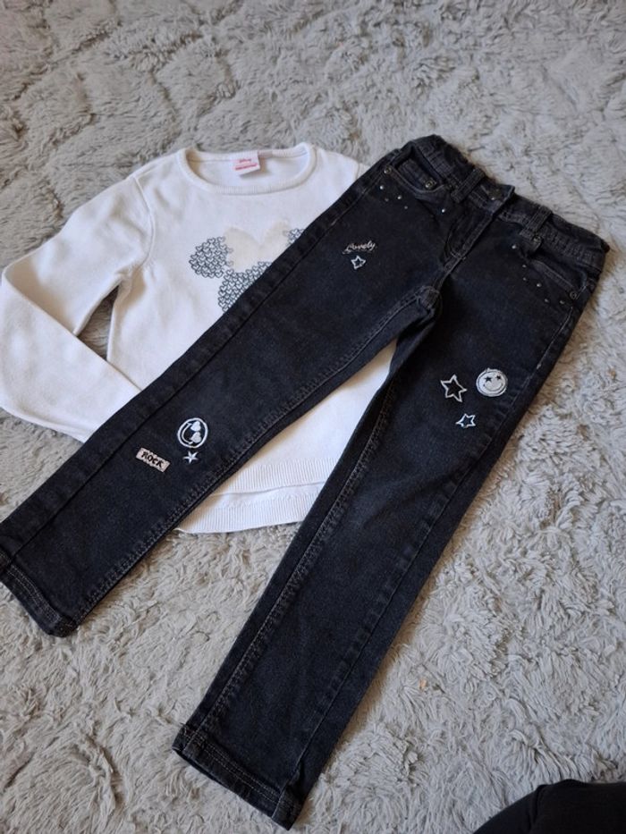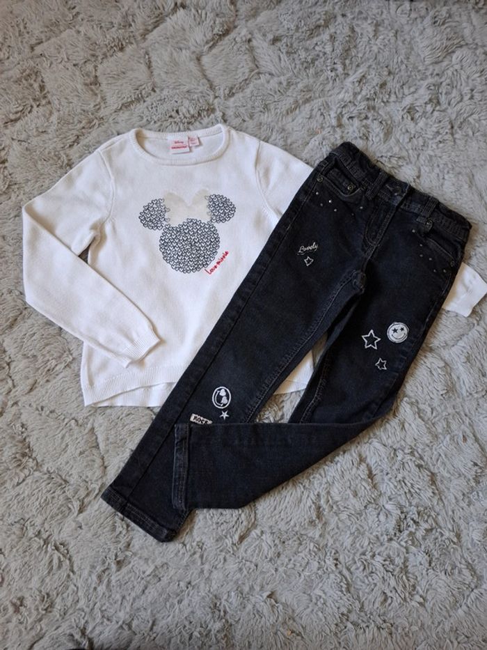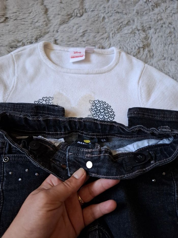 🌺 5 ans 🌺 orchestra 🌺 joli ensemble jeans noir avec des smileys taille ajustable , poches , haut pull en maille fines disney Minnie orchestra dessin de minnie avec son nœuds en sequin 🌺 automne hiver #doudou19230_5ansfille