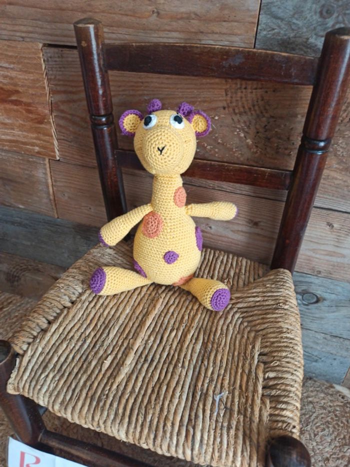 peluche tricot girafe fait main tbe - photo numéro 1