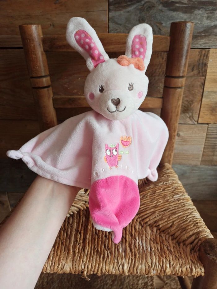 Doudou lapin rose tex hibou tbe - photo numéro 1