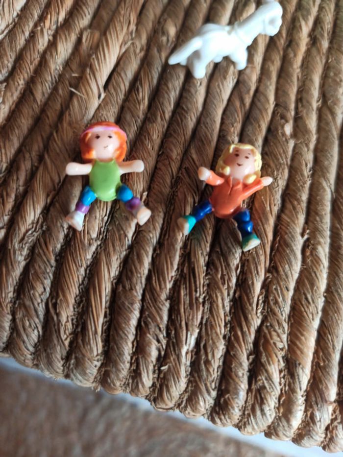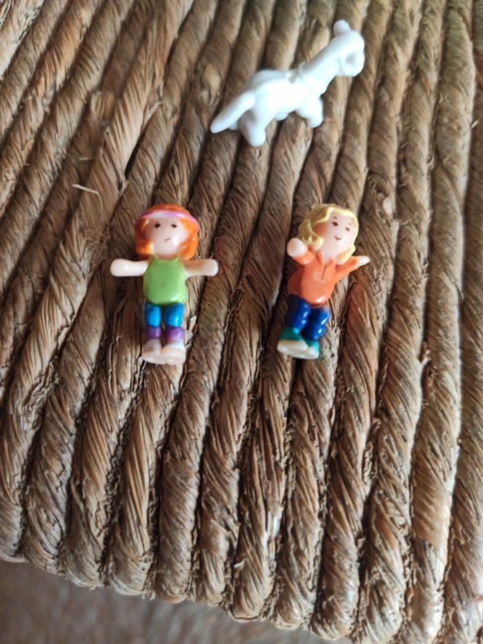 Lot un Polly pocket Be 1990 Montre des marque du temps Decoloration griffures 3 personnages 2 poupées et le cheval tbe Pour voir les autres articles de la même categorie : #badaboooom_jouets #badaboooom_pollypocket
