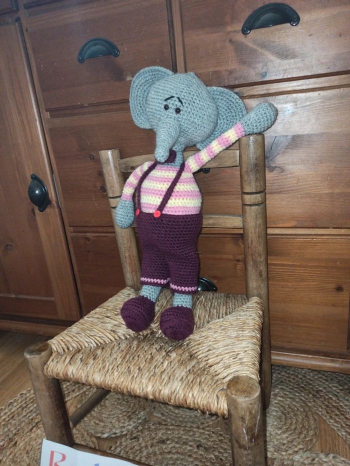 Monsieur éléphant realisé en crochet 35 cm env ( Madame éléphant viendra rejoindre le dressing) Pour voir les autres articles de la même categorie : #badaboooom_peluches #badaboooom_faitmain