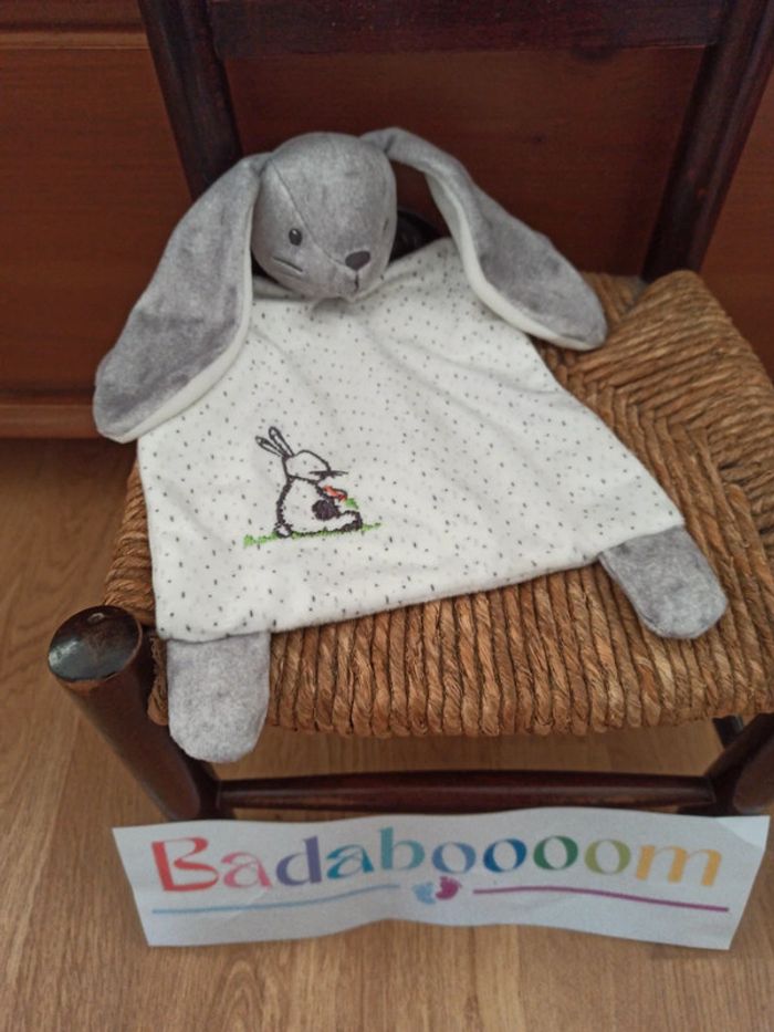 Doudou lapin gris et blanc mots d enfants tbe - photo numéro 1