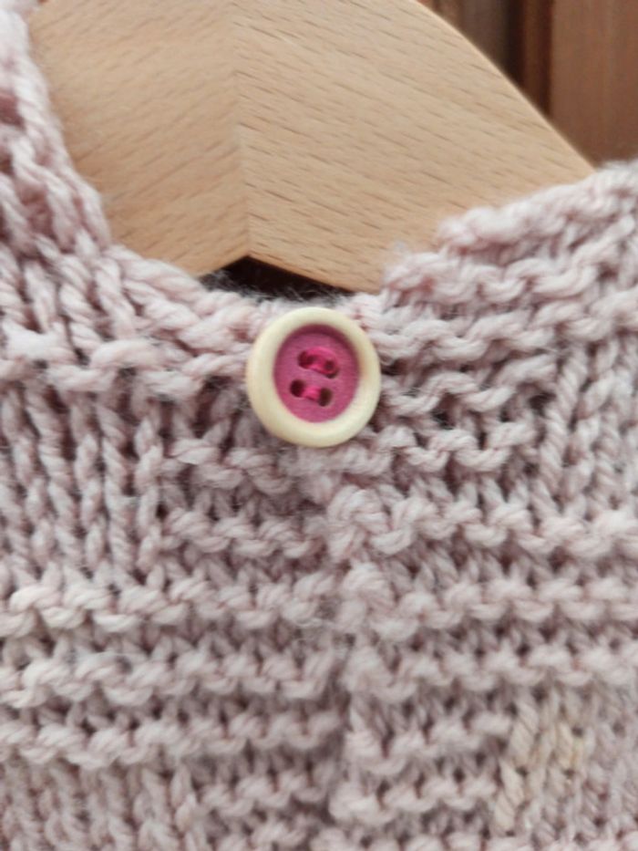 Gilet laine 3 mois fait main vieux rose - photo numéro 4