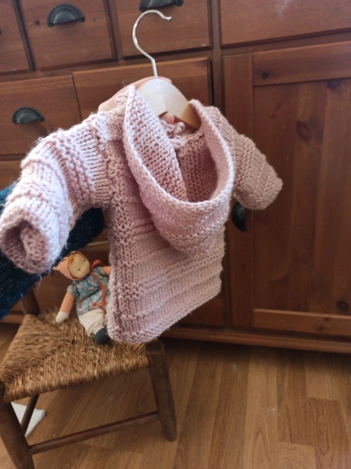 Gilet laine 3 mois fait main vieux rose - photo numéro 2