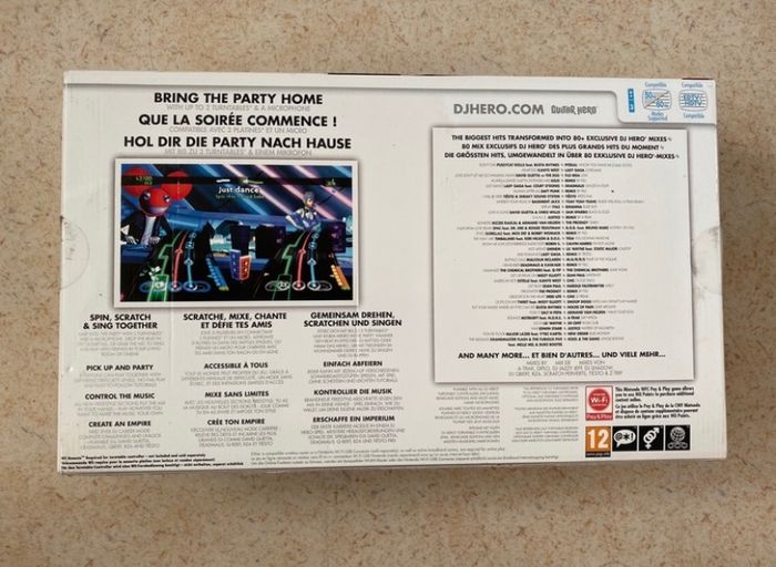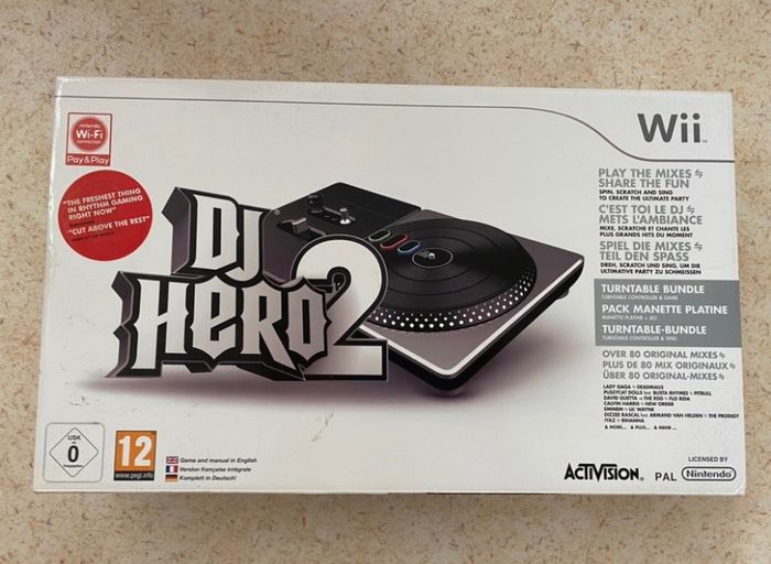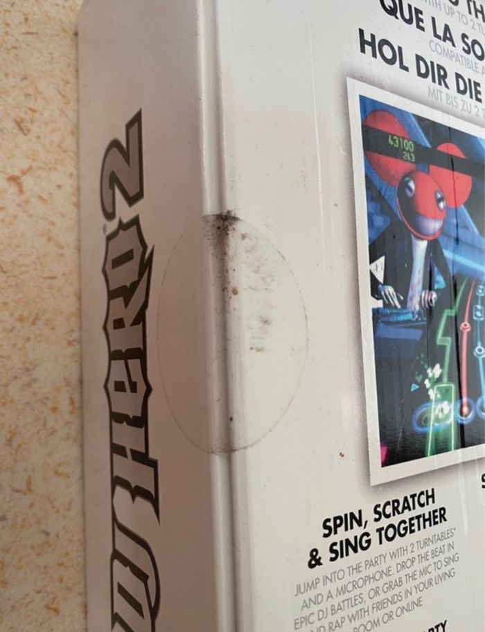 Wii en très bon état avec les manettes et tout le câblages + Dj Hero 2 neuf jamais utilisé Sur la photo 2, c'est une petite trace qui se trouve sur la Wii.