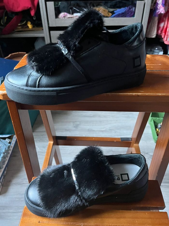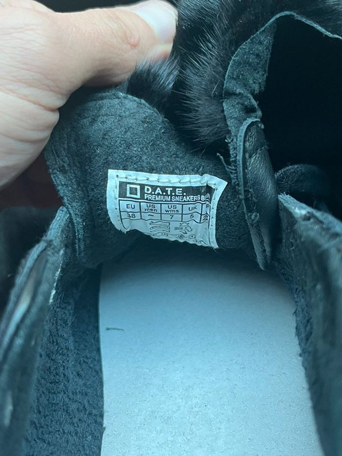 Bonjour Paire de Sneaker D.A.T.E Taille 38 / UK. 5 / US 7 Les chaussures sont en excellent état Pas de trou ou tâche Tout en cuir, très confortable. Languette à poil magnifique avec élastique de maintien. Prix constaté sur le site 180€