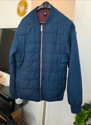 Blouson en cuir, taille 54, différentes traces d’usure du cuir, mais globalement en bon état. Le blouson est réversible et il a été acheté plus de 400 €.