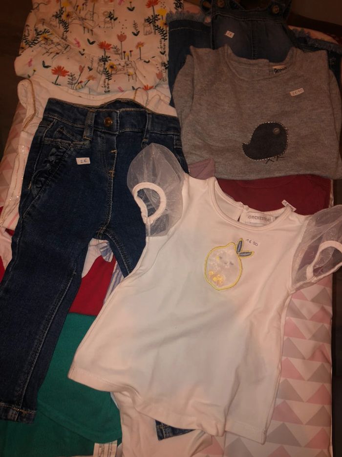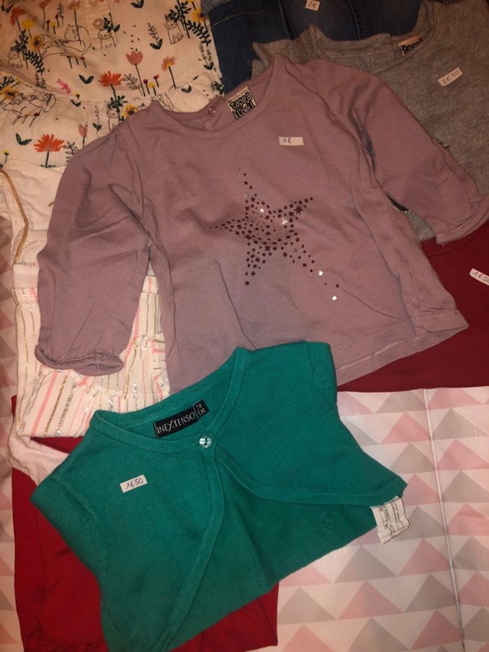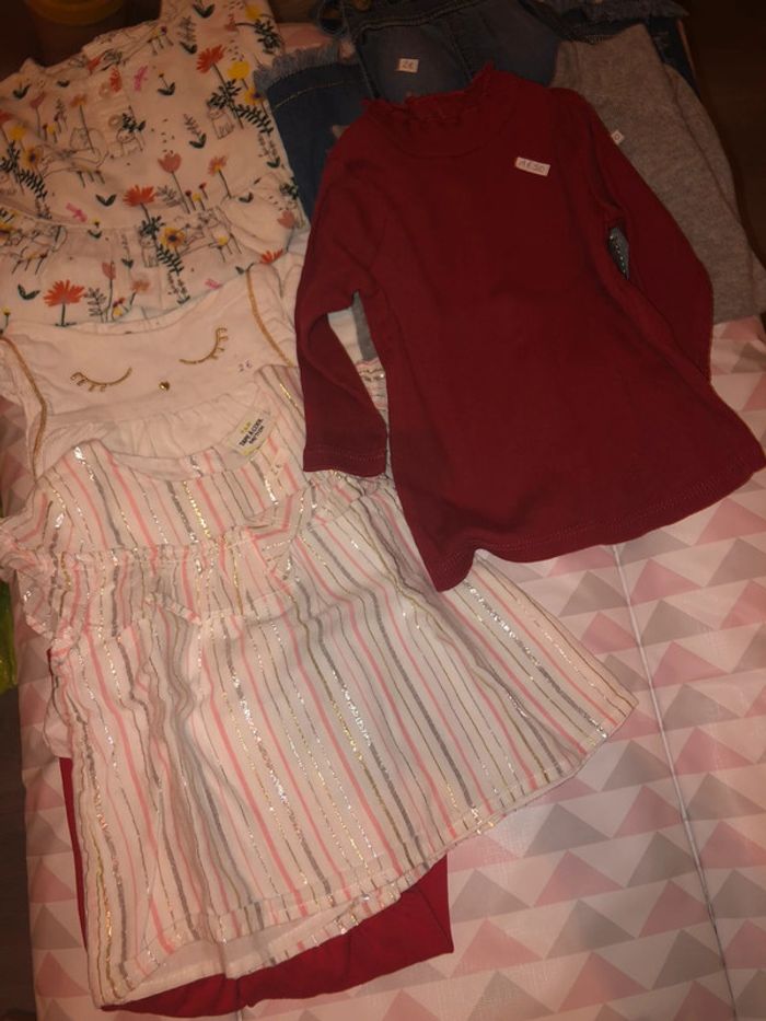 Lot de 13 vêtements taille 9 mois composé de : 5 robes 4 tee shirt 1 legging 1 gilet court 2 pantalons #romornum9mois