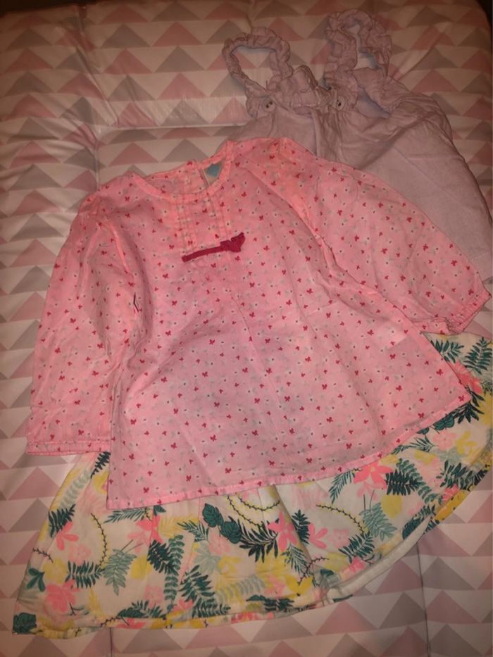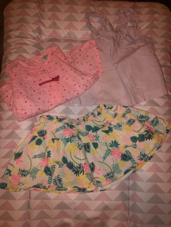 Lot taille 12 mois composé de : 1 jupe tape à l’œil 1 débardeur kiabi 1 chemisier manche longue tex #romornum12mois