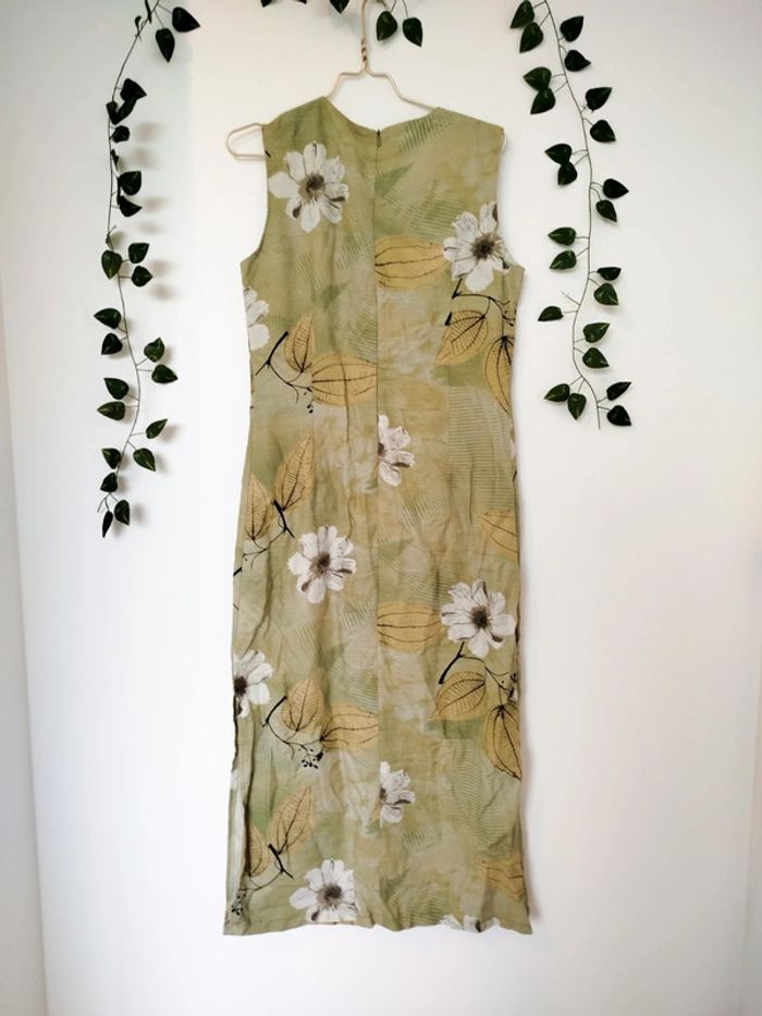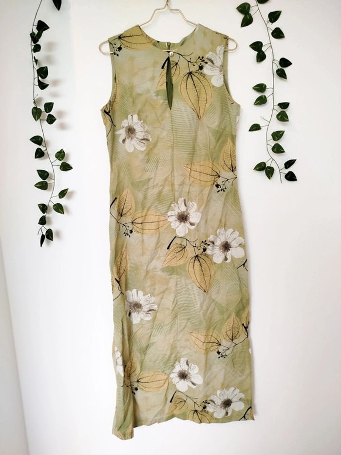 Robe vintage longue fleurie verte claire made in France taille 42 xl lin - photo numéro 3