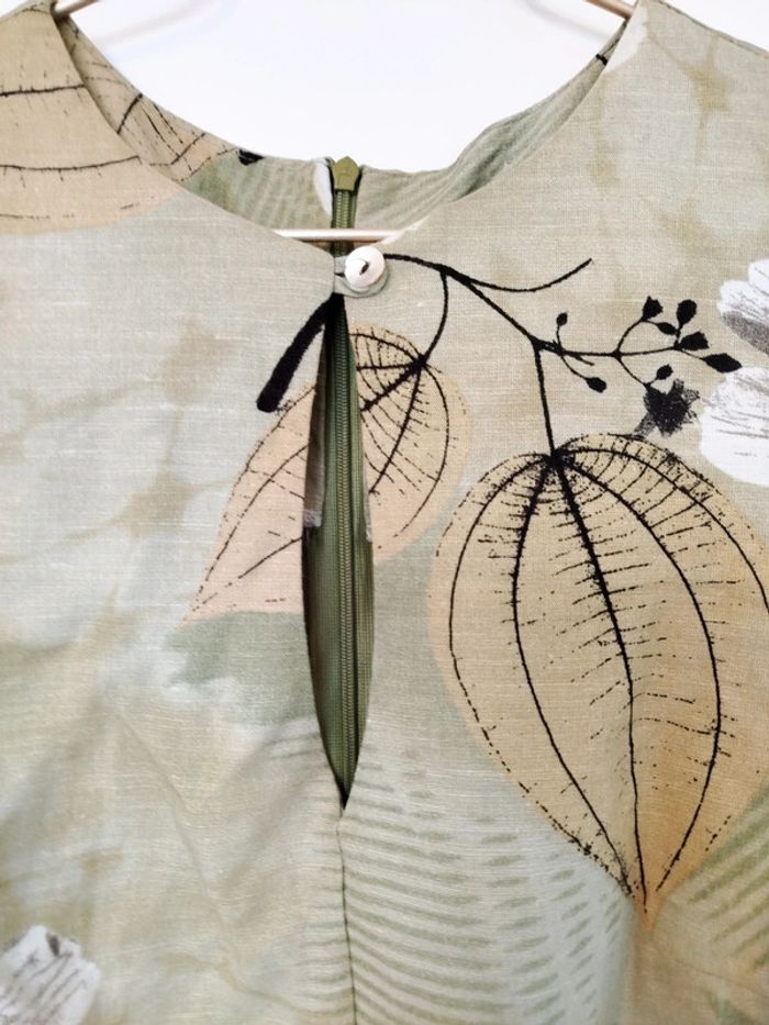 Robe vintage longue fleurie verte claire made in France taille 42 xl lin - photo numéro 4