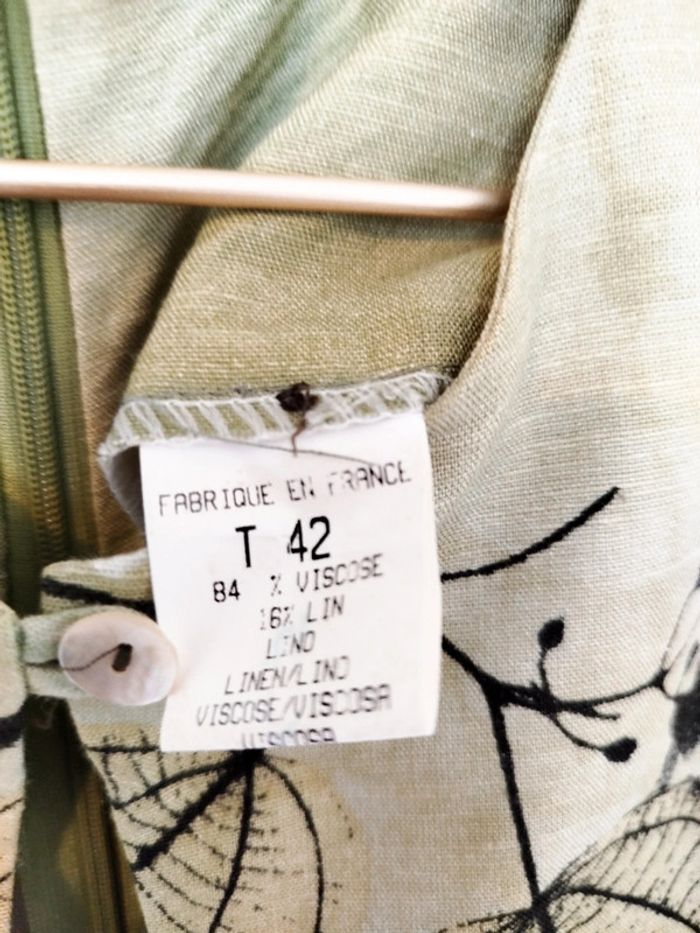 Robe vintage longue fleurie verte claire made in France taille 42 xl lin - photo numéro 5