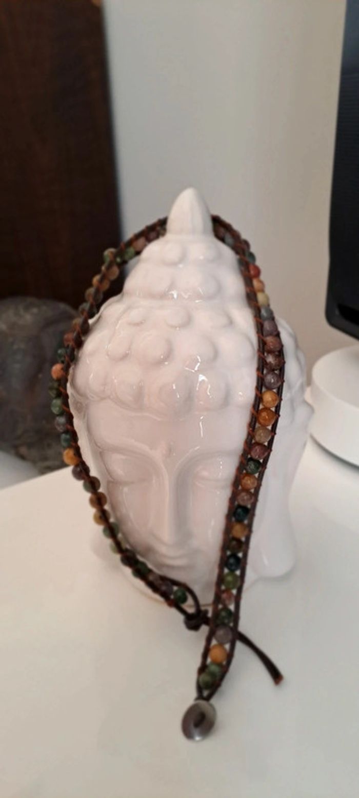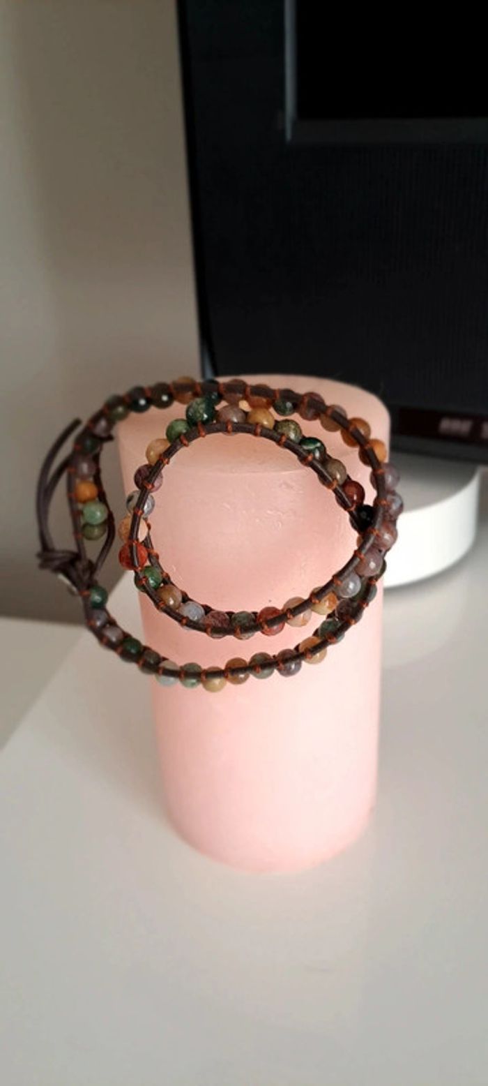 Bracelet double, fait deux tour du poignet, Pierres naturelles semie précieuses. Vendu avec une petite pochette . Peut être aussi porté en raz de cou .