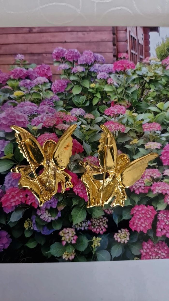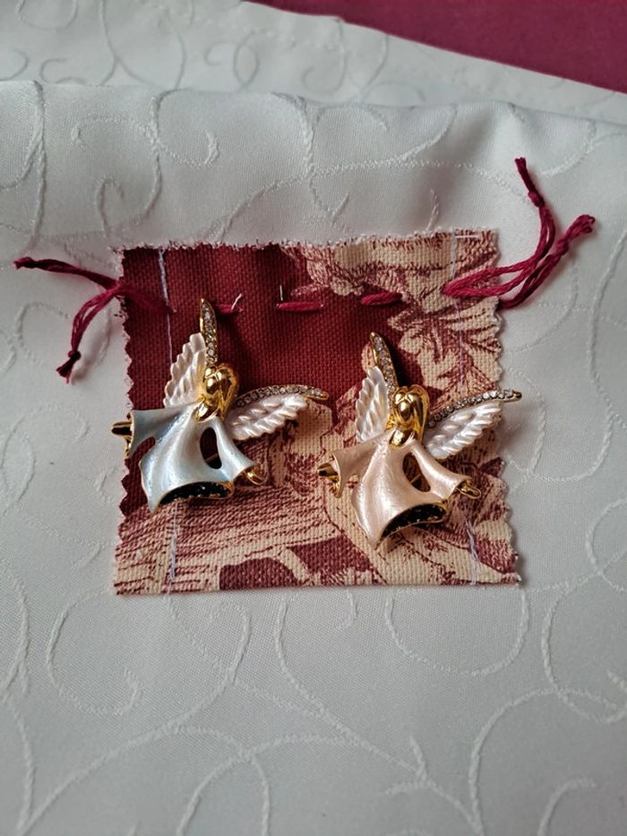 Jolies broches ,ange gardien email et strass, bleu pour l une ,rouge pour l autre, strass transparent sur les ailes. 5euros l une au choix. Voir dernière photo Offert un petit pochon