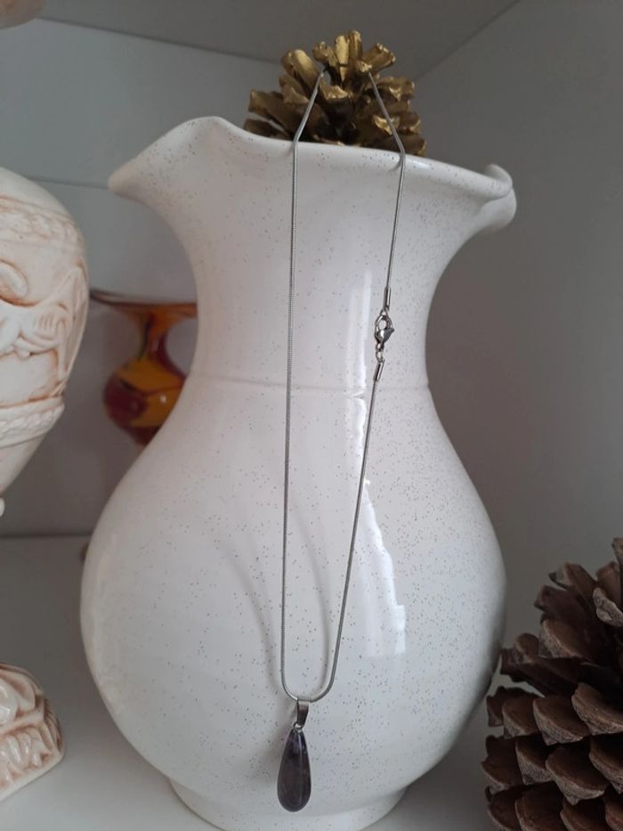 Très bon état ,pendentif en forme de goutte, chaîne en acier inoxydable,livré avec une pochette tissu.