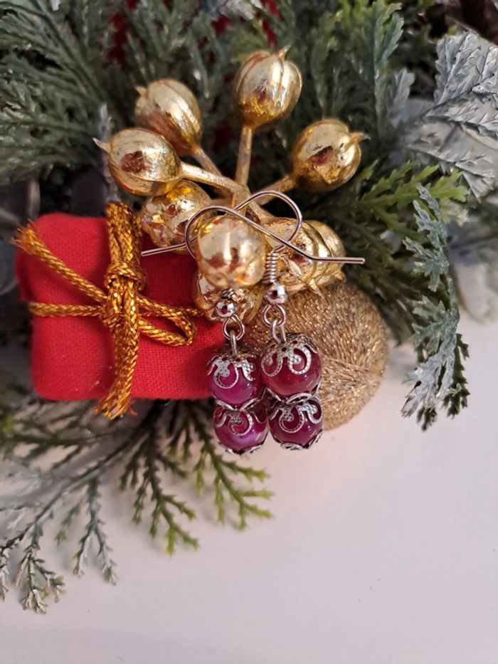 Très jolie boucles d'oreilles en jade rose, crochets sans nickel. Faites maison.