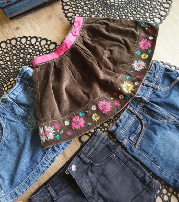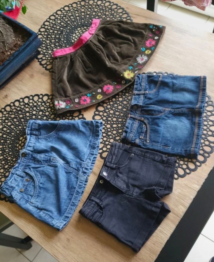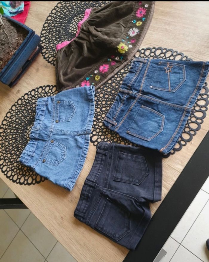 Lot de 3 jupes (DPAM, KIABI, NKY) 2 en jeans 1 marron 1 short noir (KIABI) Taille 4 ans Très bon état