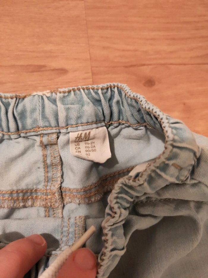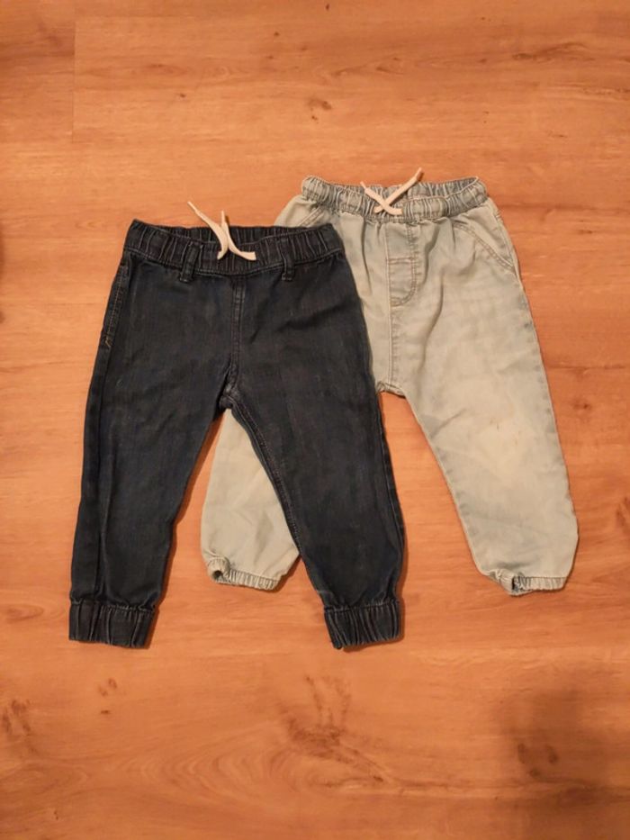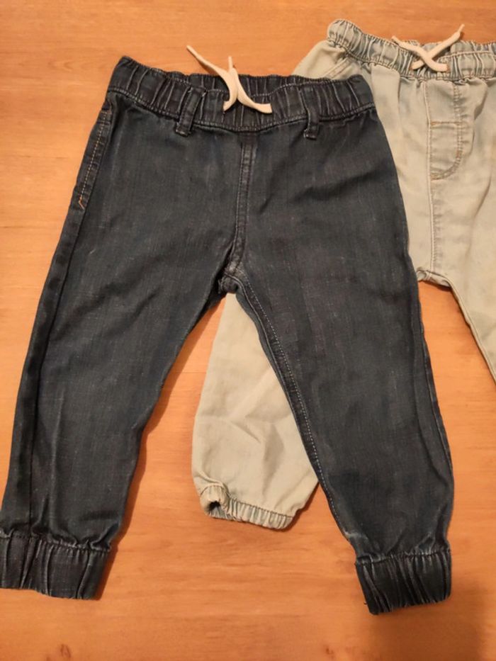 Jeans taille élastique 18-24 mois Bleu foncé très bon état, bleu clair a quelques petites taches.