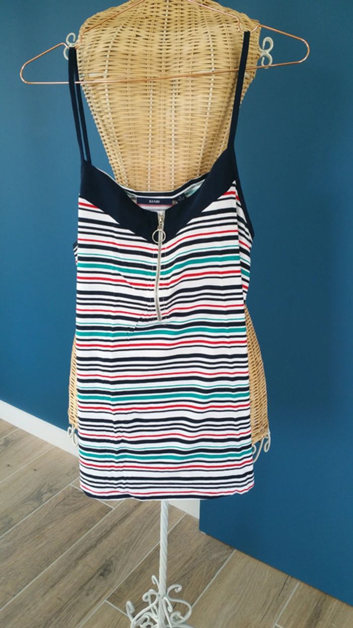 Debardeur kiabi a rayures Zip sur le devant pour adapter le decolleté Comme neuf Taille 42/44 #debardeur #rayures #taille42 #taille44 #kiabi