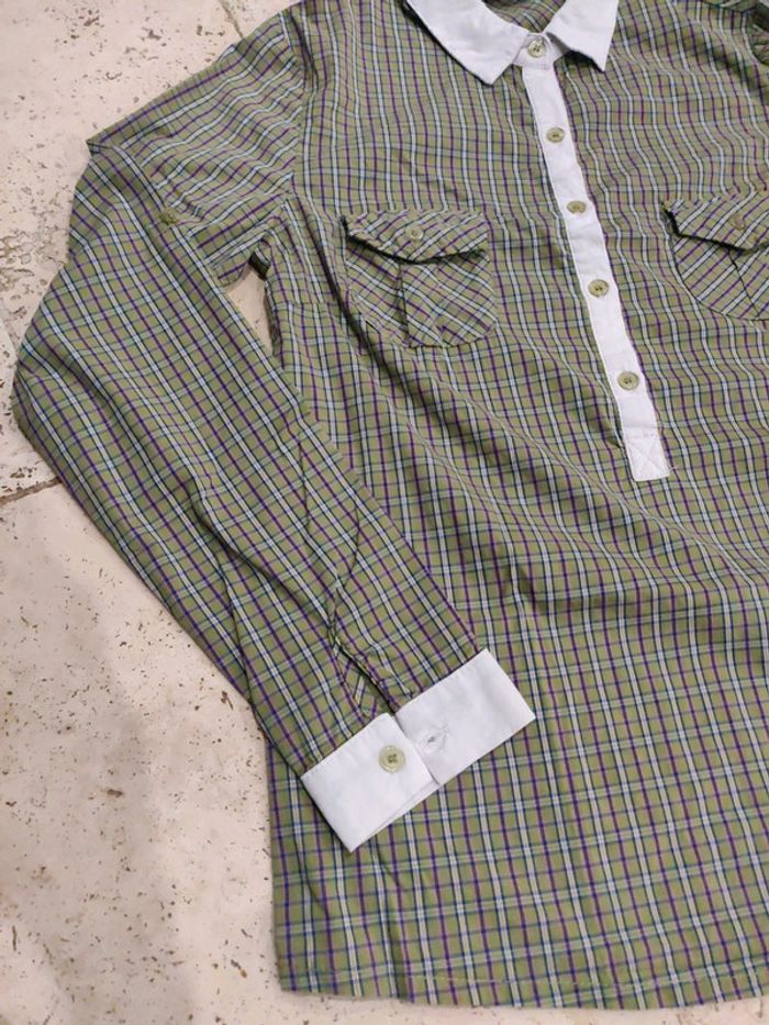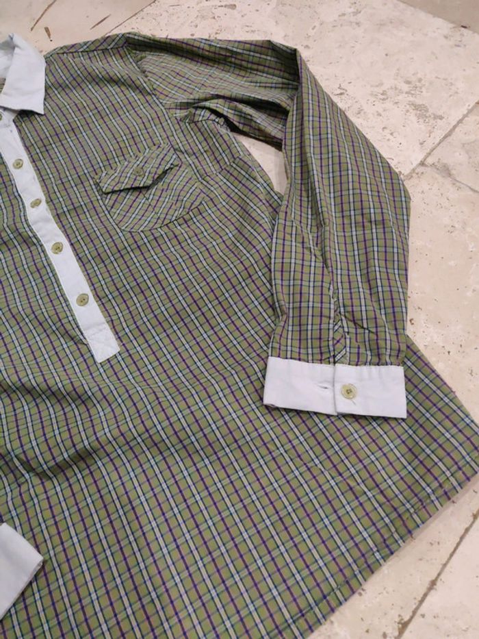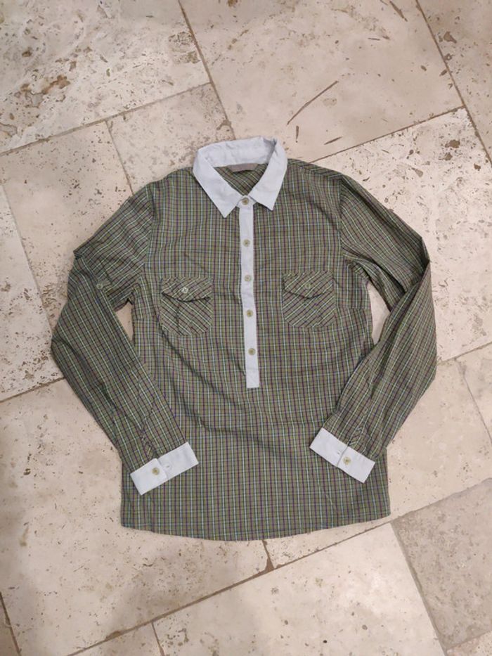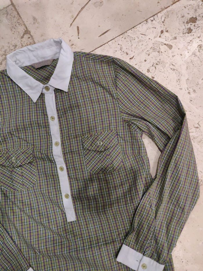 Petit chemisier à carreaux vert à col et bords des manches blancs Contient de l'elasthanne Très années début 2000 On adore 😍😍😍