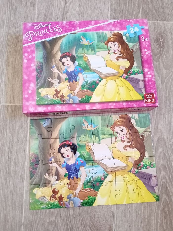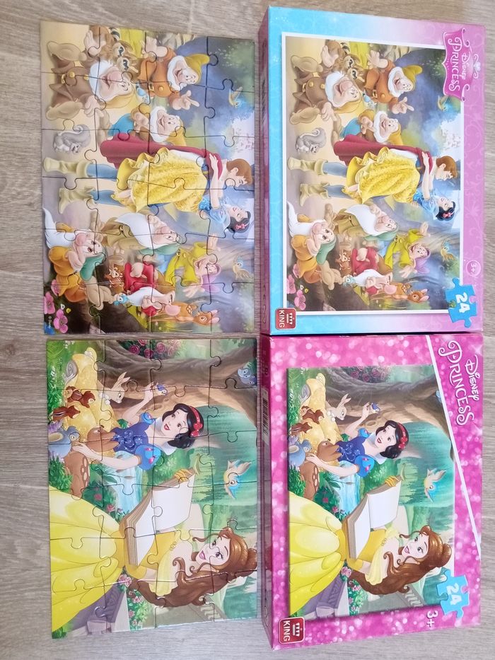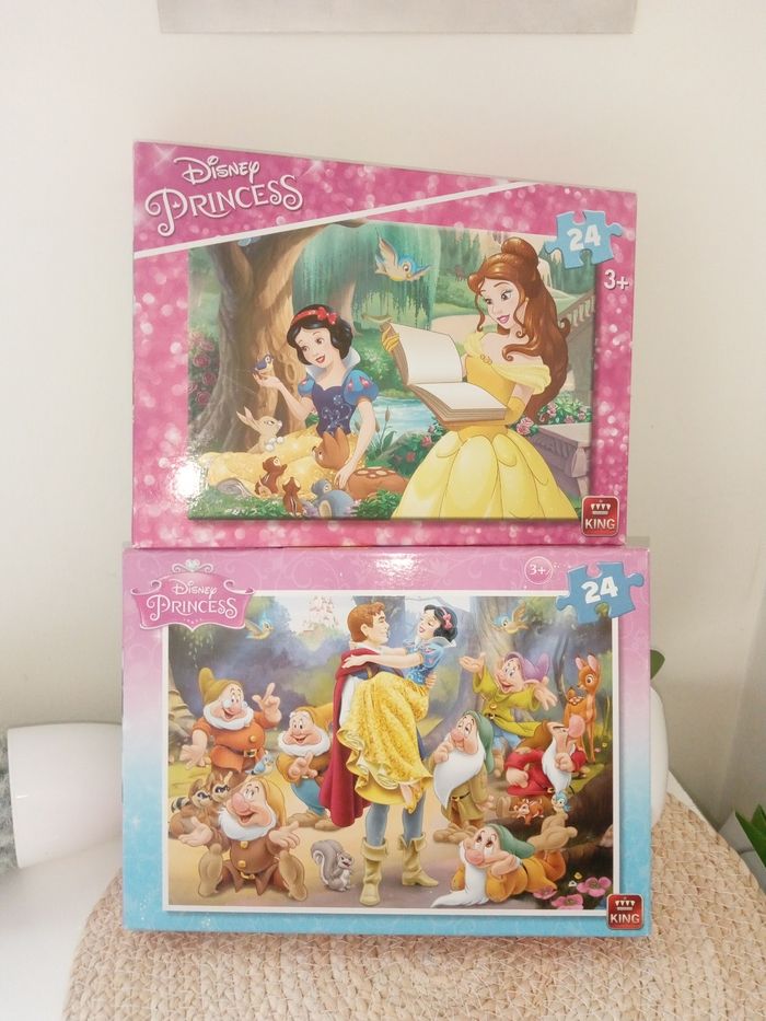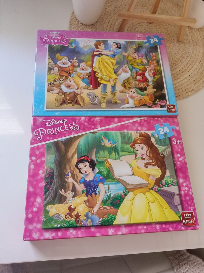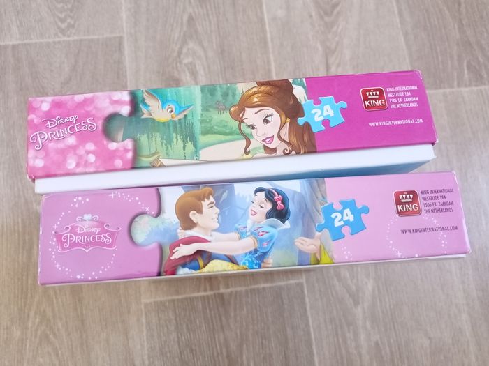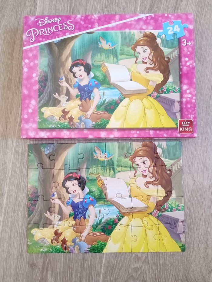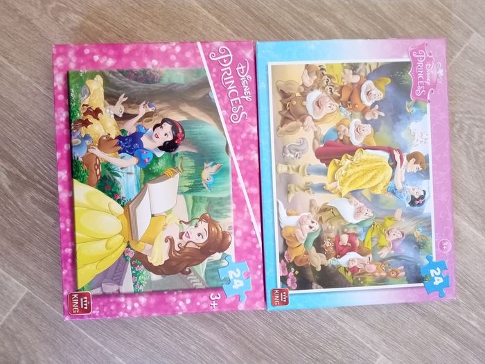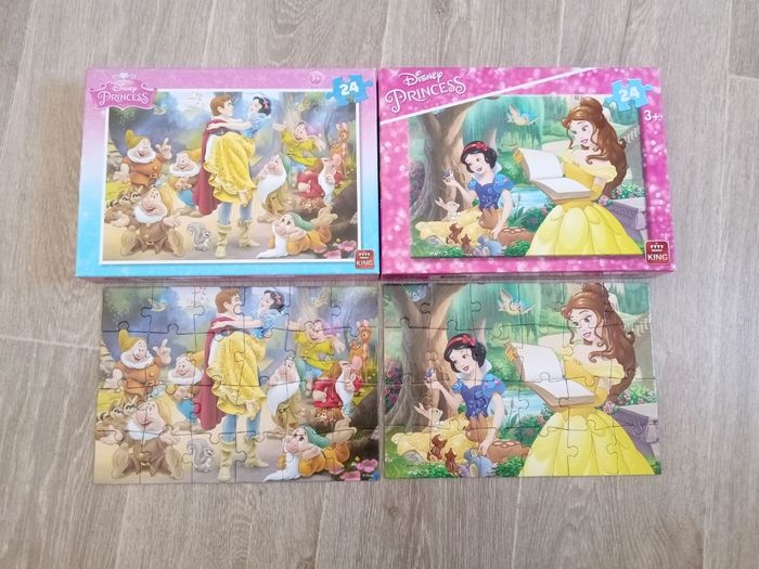 Lot de 2 puzzles princesses Disney 24 pièces chacun Complets - La Belle et Blanche Neige - Blanche Neige et les 7 Nains Très Bon état Marque King 3 ans et plus