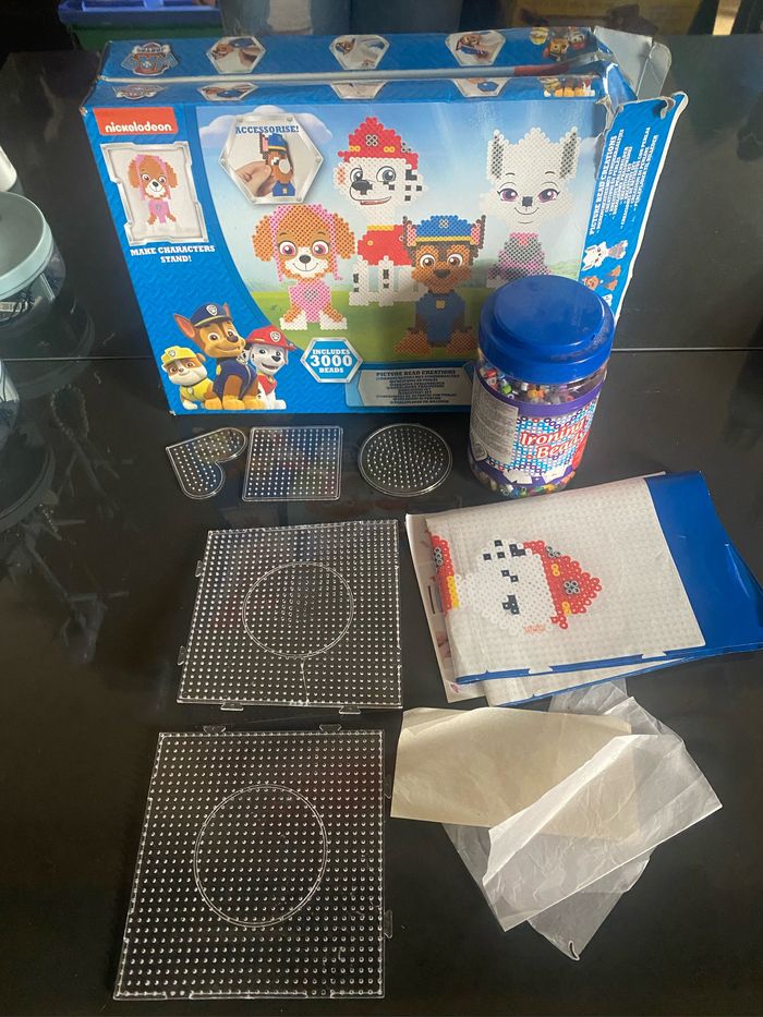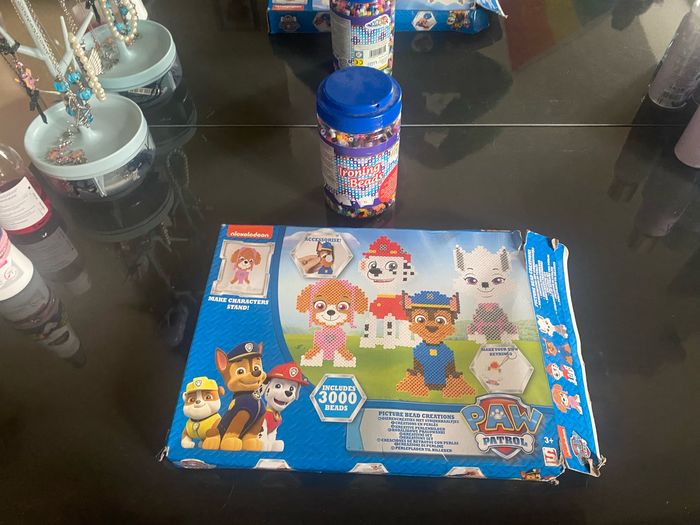 Jeu créatif Création de perle avec un pot de perle à repasser bon état ( juste une plaque fissurée et gondolée ) A partir de 3 ans Marque Nickelodeon
