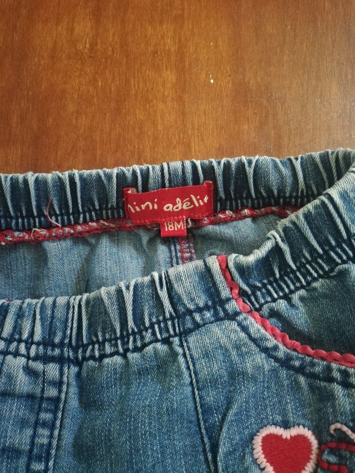 Jupe en jean bleu avec frange rouge 18 mois mini Adelie - photo numéro 1