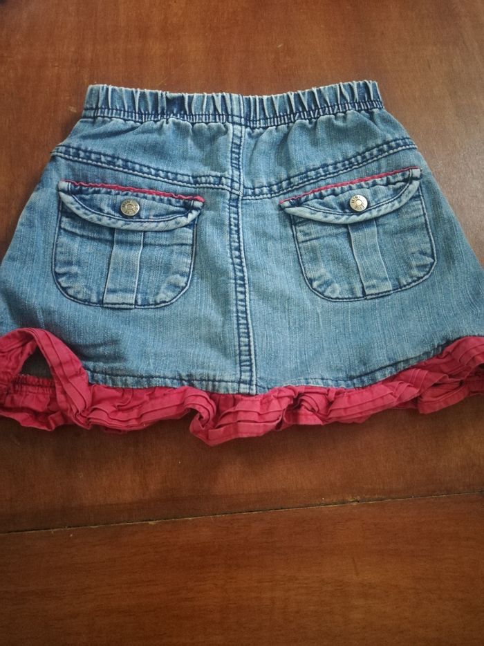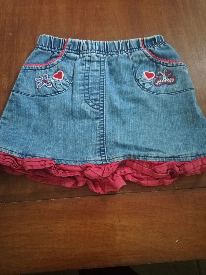 Jupe en jean bleu avec frange rouge 18 mois mini Adelie