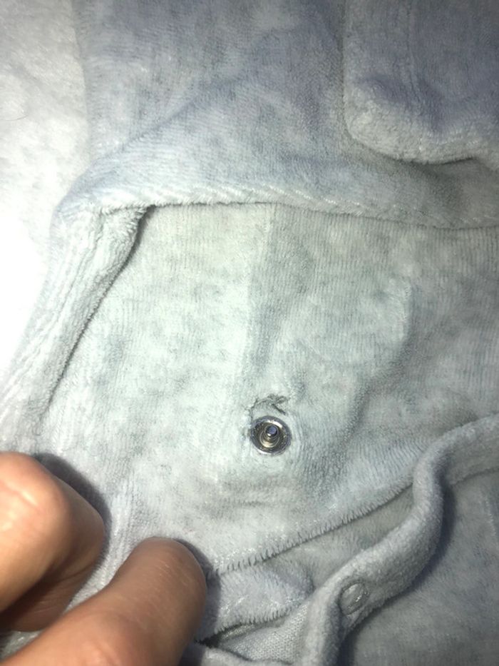 #chlochette8taille6moisgarcon Petit trou au niveau de la pression à l arrière cf photo