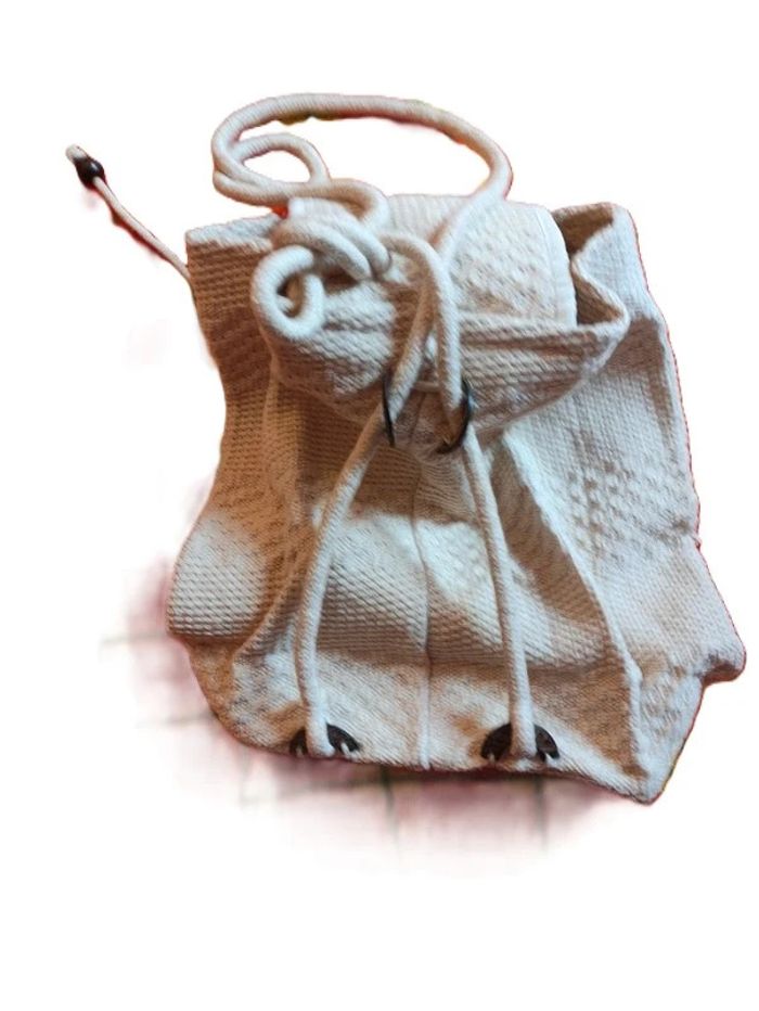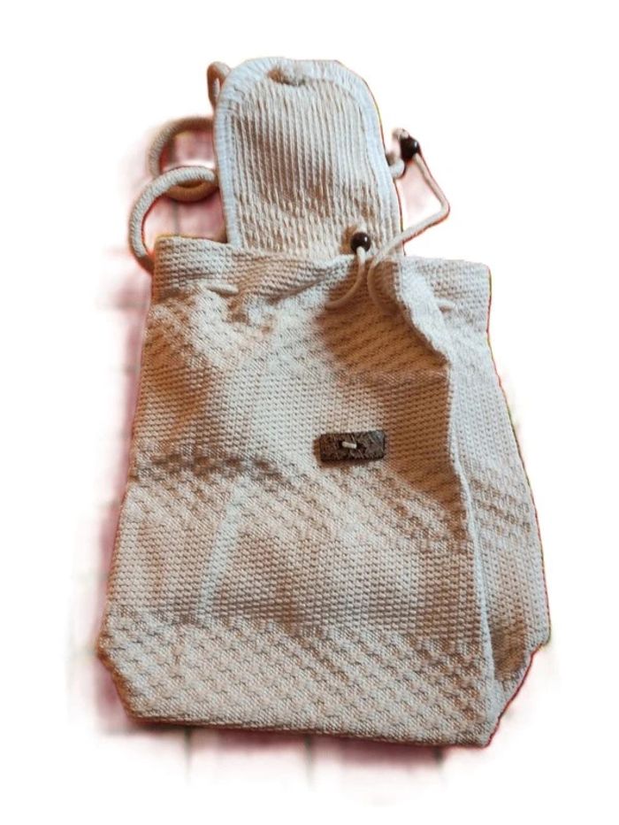👩🏻#verseau59_tailleSac Sac à dos bohème . Crème. Cordon de serrage. Bouton fermeture. Longueur totale :34 cm. Largeur 15 cm et plus.. Fond du sac : rectangle de 24 cm X 14 cm.