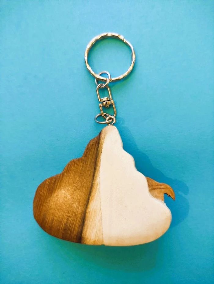 Porte clé, Chat sapins...belle finition, en Bois. 6 cm X 5 cm haut.