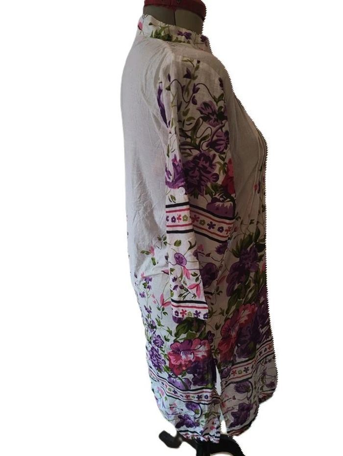 Tunique blanche fleurie multicouleurs Pushkar  Taille S M. - photo numéro 3