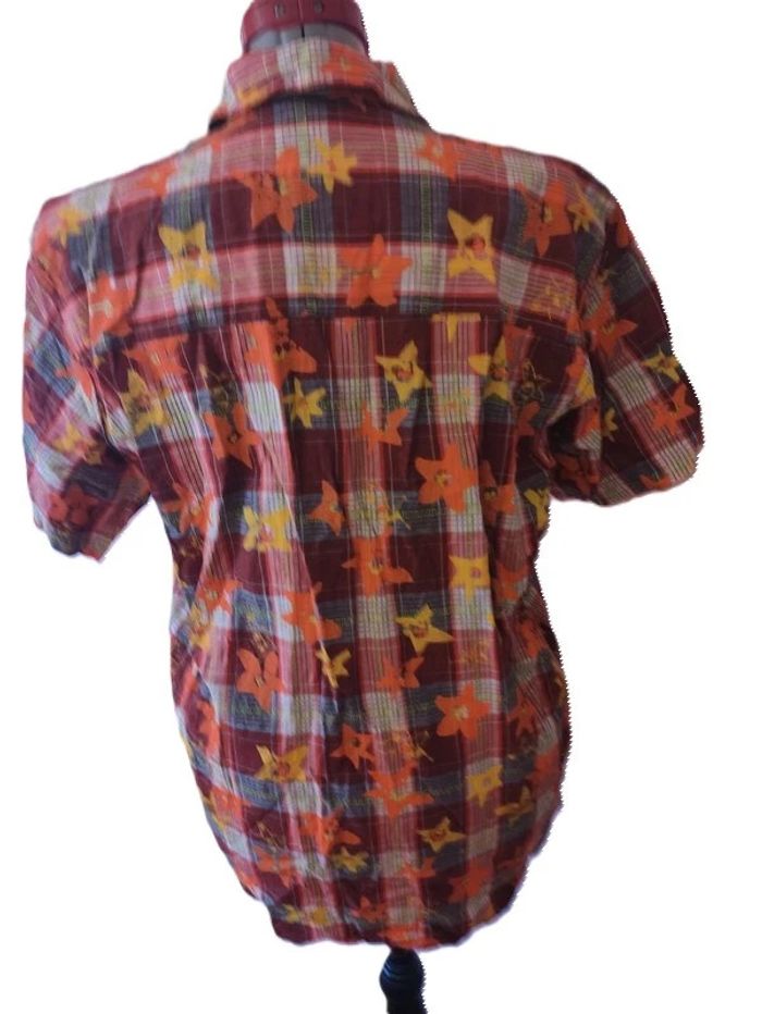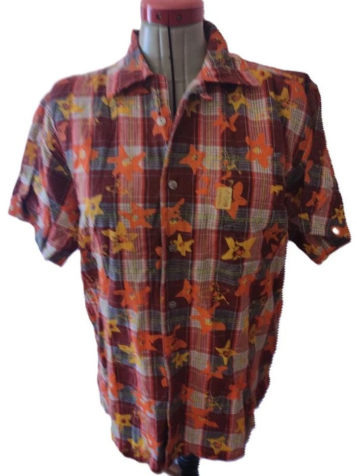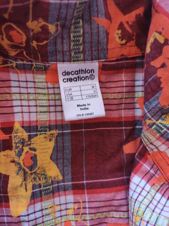 <<<<<Taille grand, regardez bien les mensurations§§§§>>>> Chemise imprimée colorée. Taille M. Décathlon. Longueur totale : 75 cm. D'une aisselle à l'autre : 61 cm. Coton . Lavage 40°.