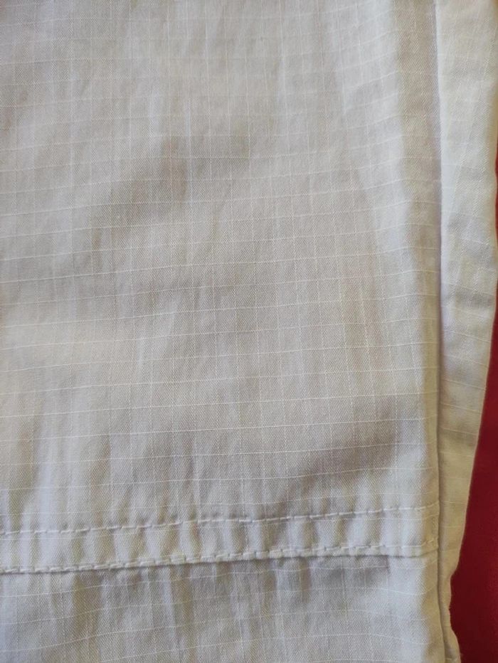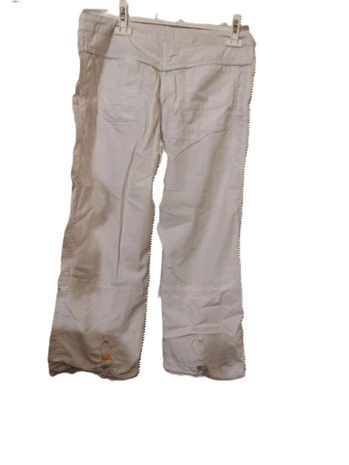 👩🏻#verseau59_taille40Pantacourt Pantacourt sport LOGG Blanc Taille 40. Longueur totale :85 cm. Tour de Taille :86 cm. Entrejambes :55 cm. Fermeture éclair. Lien ceinture ajustable. 2 poches devant. 2 poches au dos. (Points voir photo, et une tache très claire, voir photo, sinon en Parfait état , pour aller marcher, plage...)