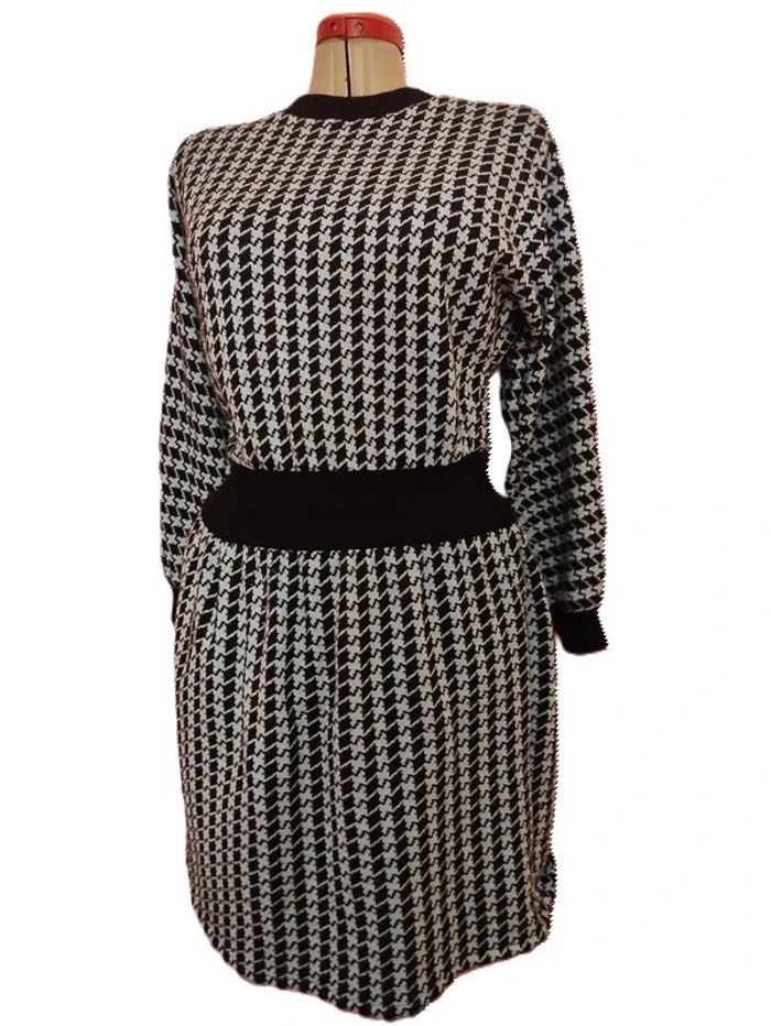 Robe taille smockée bleu noir losanges 38 1980 - photo numéro 4