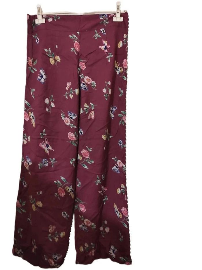Pantalon bas large. Fleurie violet imprimé. Viscose - photo numéro 1