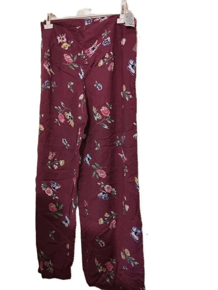 👩🏻#verseau59_taille42Pantalon Pantalon bas large. Fleurie violet imprimé. Taille 42.Blancheporte. Longueur totale : 103 cm. Longueur Entrejambes :76 cm. Largeur bas pantalon :28 cm. Tour de Taille. 87 cm. Fermeture éclair pas côté.(ouverture 17 cm). Tissu fin .100% Viscose. Lavage 30°.